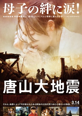 復興はときに物語を必要とし、そして物語はときに災厄を必要とする。大仰な劇伴を用いたふれこみ通りの「泣かせる」演出に辟易してしまうのは、わたしが被災者ではないからだろうか(これは皮肉ではない)。とはいえ、震災によって離散した家族の、30余年におよぶ大河物語を2時間に収めるにはどうにも無理があり、端々に粗雑さが否めない。当時海外支援を拒否した文革末期共産党の政府対応の是非にはふれてほしかったところだが、中国メジャーの作品ゆえ望むべくもないことか。