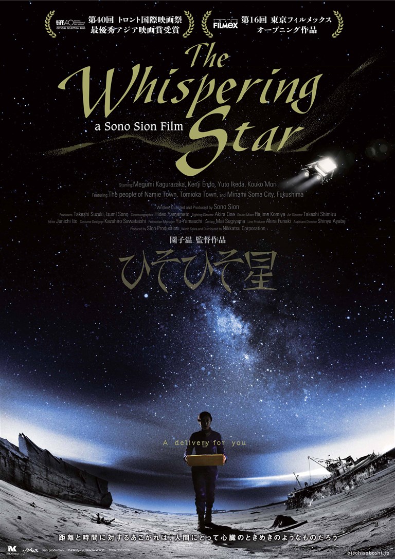 園子温の、いささか毒のある昭和へのノスタルジー回帰。昭和の日本家屋ふうな作りの宇宙船での時間の停滞は、終盤の影絵の回廊に向かうための、時間だったのか。いまは消え去った人々の日常風景やモノや遊びなどが、白い障子ふうの向こうに影絵化されてどこまでも。ロボットという設定の神楽坂恵が立ち寄る荒涼とした惑星の光景と、僅かに存在する人間も、みな後ろ向きで、いまにも消えそう。ひんやり感と喪失感を含め、園子温の映像散文詩は、やはり昭和なのか……。