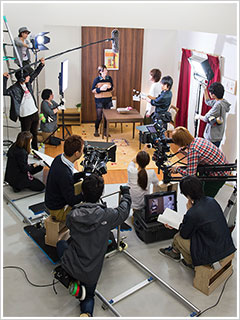 デジタル化が進み、インターネットなどを利用すれば一人でも映像作品を作れる時代に、あえて大人数での制作を行っているのが同大学の特徴だ。今回、3年生や4年生の作品作りが進行中の編集室やスタッフルームを見学させていただき、“もの作り”の熱気の一端を感じることができた。制作本数は1学年で1〜2本と少ないが、交渉や申請といった各パートの仕事を日常的に繰り返していく中で、卒業後、どんな仕事に就いても役に立つ力が自然に身に付くという。