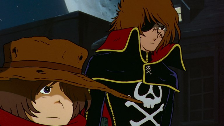 999号が発着する地球メガロポリス・ステーションを中心とした超近代的な大都会とは、全く対照的にスラム化したダウンタウンに住む星野鉄郎は、銀河鉄道全線の定期券を盗んで機械人間のポリスに追われていた。その鉄郎を母そっくりな謎の女性メーテルが救った。五年前、鉄郎が十歳の頃、機械伯爵の率いる人間狩りの一団に母親が殺された。地球の金持ち人間たちは、競って機械人間の体を買い、千年の寿命を得たが、貧しい人たちはそれも出来ず、次々と殺されていくだけだった。鉄郎は母の形見のペンダントを胸に、アンドロメダに行って永遠の命をもらい、機械伯爵へ復讐を誓っていた。鉄郎はメーテルと共に、銀河鉄道999号に乗って旅に出た。最初の停車駅は、土星の衛星の一つタイタンで、メーテルは胸を撃たれ連れ去られ、鉄郎は危ういところを、不思議な老女に救われる。メーテルを連れ去った山賊の首領アンタレスは、数少ない生身の人間で、鉄郎が機械人間ではなく、しかも親の仇である機械伯爵を討とうと知って、同志としてメーテルを返してくれた。鉄郎は、アンタレスから、機械伯爵の住む時間城の場所を女海賊エメラルダスが知っていると聞き、老女の息子トチローの持っていた銃を抱いて、メーテルと共に、再び999号に乗って旅に出た。暫くして、999号にクィーン・エメラルダス号が接近してきた。そして、時間城の現在位置が、トレーダー分岐点であることを告げると、エメラルダスは再び飛び立っていった。トレーダー分岐点、それは999号の次の停車駅。人間や機械人間の吹きだまりの絶望の街だ。鉄郎は酒場の親父から、トチローの居場所を聞いて会いに行く。トチローは機械伯爵と果敢に戦っていたが、力尽きて、すべてを鉄郎に託すと、生命体となって宇宙に消えた。暫くして機械伯爵の放った無法者に襲われ、苦闘していた鉄郎は、トチローの友人キャプテン・ハーロックに救われる。なんとか時間城に潜入した鉄郎は、人間に郷愁を感じ仲間になった伯爵の女、リューズの助けと、応援に来たアンタレスと共に戦った。体の中に無数の不発弾を埋めこんでいるアンタレスが、胸を撃たれ、そのショックで不発弾が誘発して、そのうちの一つが機械伯爵の肩を砕いた。そして、鉄郎は命乞いする伯爵の頭に銃弾を浴びせ、遂に父、母の仇を討った。そのとき鉄郎は、機械の体を人間に与えるアンドロメダ星の破壊を考えた。その星さえなければ、人間は人間らしく生きられる。キャプテン・ハーロック、エメラルダスに見送られ、鉄郎はメーテルと共に、999号でさらなる旅に向かった。しかし、メーテルの表情はなぜか暗い。十六歳になった鉄郎は、メーテル、999号の車掌、クリスタルガラスの体をもったウエートレス、クレアと誕生日を祝った。やがて、数々の戦艦に迎えられて、999号はアンドロメダに着いた。そこで待っていたのは、アンドロメダを支配する女王プロメシュームだ。そして、メーテルは何と、女王の娘だった。裏切られた気持で無念の鉄郎。部品にされるべく、手術室に運ばれる鉄郎。しかし、ハーロックとエメラルダスの砲撃がアンドロメダを揺るがせた。一方メーテルも、鉄郎を救出しに手術室へ入った。鉄郎と母親の板ばさみで苦しむメーテル。鉄郎はメーテルの父の生命体の入ったペンダントを投げつけた。爆発するアンドロメダを後に、鉄郎とメーテルは999号に飛び乗った。窓から爆発するアンドロメダを見てホッとする鉄郎の首を、突然現らわれたプロメシュームが締め上げた。苦しむ鉄郎。しかし、プロメシュームに抱きついたクレアが自爆して、女王と共に砕け散った。999号が地球に着いた。そして鉄郎は、再び旅に出るメーテルをいつまでも見送り続けていた。