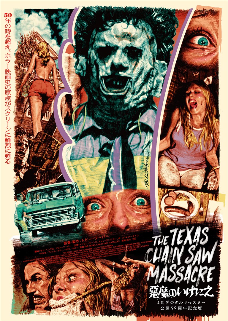 サリー(マリリン・バーンズ)、ジュリー(アレン・ダンズィガー)、フランクリン(ポール・A・ パーティン)、カーク(ウイリアム・ヴァイル)、パムの仲良し5人組は、夏休みを利用してドライブ旅行に出ることになった。フランクリンは半身マヒで車椅子生活の青年だったが、誰一人として彼の世話を厭がる者はなかった。フランクリンとサリーは兄弟である。中西部あたりの砂漠から荒野へ、湖沼地帯を抜け、畑の真中を通り、山を越える。今日もまた抜けるような青空のもと田舎道を走っていると、一人の若い男が道路脇に立って親指を突き出している。ヒッチハイカーだ。車に乗り込んだ男は異様な風体だった。しかも、車の中へ入ってきて腰を下ろすなり、いきなりナイフを取りだし、自分の手のひらを切りつけた。2、3のやりとりのあと、今度はフランクリンの手に切りつけた。彼らはやっとのことでその狂人を追い払って難を逃れた。夕暮近くなって、一行は一軒の家を発見する。はじめにカークとジュリーが扉を叩いた。返事はなく、カークがおそるおそる扉を開けて入る。ジュリーが庭に出ている間に最初の殺人が行われた。突然、カークの眼の前に飛び出した男、顔にレザーの仮面をつけ、食肉解体者が用いるような白いエプロンをつけている大男だ。男は鉄のかなづちでカークの頭を一撃、けいれんを起こす彼に2度3度とかなづちをふるう。何も知らずに部屋に入るジュリー。異様な雰囲気にジュリーは恐怖と危機を覚え、立っていられない。逃げなくてはと思っても足が進まない。泣きながら部屋を出ようとしたところをさっきの男に退路を断たれる。暴れる彼女を横にかかえると、カークの殺された食肉解体室に連れ込み、太い縫針に彼女を吊した。その頃、二人の帰りが遅いのを不審に思った残りの二人が協議し、パムが様子を見に出かけることになったが、同様に彼も殺されてしまう。残ったサリーはフランクリンの車椅子を押して、その廃屋に向かった。しかし、前方から不気味なモーターの音と共に突進してきたのは例の仮面の男だった。男は手に自動のこぎりを持って、それをふり回しながらやって来る。男はのこぎりを車椅子のフランクリンの胸に突き立てた。飛沫になって空中を染める血しぶきとフランクリンの絶叫。サリーは逃げる。やっとのことで追撃をかわして逃げ込んだ道路沿いのガソリン・スタンド。しかしそこの主人もまた一味なのだ。サリーは麻袋に入れられ、再びもとの廃屋に連れ戻される。昼間のヒッチハイクの男は仮面の男の弟であり、スタンドの男は兄弟の父だった。さらに2階にいるミイラのような男は人の血を吸わなければ死んでしまうという、彼らの祖父だった。こうして異常性格と呼ぶ以上の地獄の狂人4人が乙女の血を求めて集まった。
