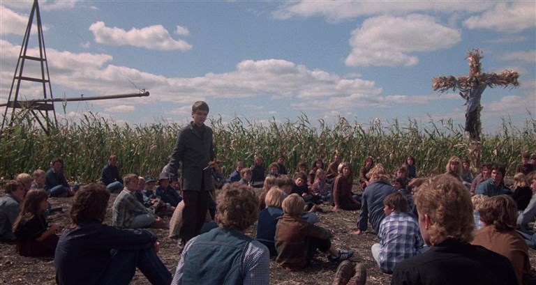 ネブラスカ州の小さな田舎町ガトリン。この町に住む少年アイザック(ジョン・フランクリン)に突如、トウモロコシの神が舞い降り、教祖となる。教祖は手下の子どもたちを率いてカルト化し、町中の大人たちを惨殺すると、“後光のさす中、神は私の前にお立ちになった”と説く。やがて、子どもとトウモロコシだけになったガトリンに、青年医師バート(ピーター・ホートン)と恋人ビッキー(リンダ・ハミルトン)のカップルが迷い込むが……。