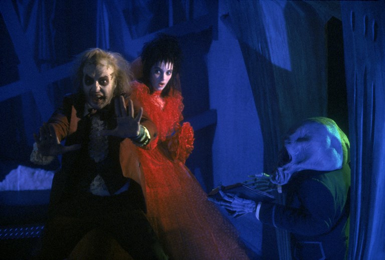 ニュー・イングランドののどかな田舎町に住むアダム(アレック・ボールドウィン)とバーバラ(ジーナ・デイヴィス)の若夫婦は、矯から自動車ごと落下してあえなく死亡してしまう。幽霊になったことをなかなか自覚できなかった2人も家の外に出ると、サンドウォームのような怪物に襲われ、屋恨裏部屋には「新しく死者になった者へのガイドブック」がおかれたりしていて、やっとあきらめた。やがて、ニューヨークから成金一家が越して来た。金儲けの機会をたえず狙っている父のチャールズ(ジェフリー・ジョーンズ)と、一人よがりの彫刻を作っている母のデリア(キャサリン・オハラ)、前妻との娘で妙に冷めているリディア(ウィノナ・ライダー)の3人だ。アダムらは彼らを追い出そうと、脅かすが彼らには見えないらしくまるで効果がない。ハンドブックをたよりに、後世社会(アフター・ライフ)のカウンセラー、ジャノー(ヘレン・ヘイズ)に相談すると「ビートルジュースには頼んではいけない」という。正式にはベラルギウスと呼ぶのだが、このビートルジュースは人間を追い出すバイオ・エクソシストの仕事をしている。しかし、効果はないどころかトラブルがおきるだけだからだそうだ。孤独なリディアは幽霊の存在に気付き、仲良くなる。チャールズが友人を呼んでパーティを開いたので、アダムらはみんなにバナナ・ボートを踊らせてみた。みんな驚いて逃げ出すと思いのほか、チャールズは幽霊博物館を作って金儲けをしようと計画する。仕方なくアダムとバーバラはビートルジュースを呼び出したが、口八丁手八丁でスケベな男に呆れて早速お引き取りをねがう。デリアの友人のオーソ(グレン・シャディックス)の降霊術でアダム、バーバラが呼び出され急速に老いていく。2人を助けようとリディアがビートルジュースを呼び出し、大騒動の末にビートルジュースは幽界にもどされ、幽霊2人とチャールズ一家は仲良く同居することになった。