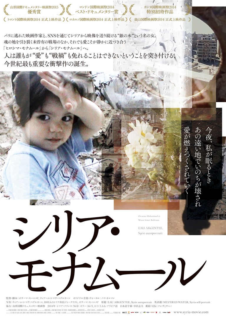 2011年春。アラブの春に始まった民主化運動はシリアにも押し寄せ、42年続くアサド独裁政権に対する不満と自由を求める声が市民の大規模なデモを生んだ。ところが、政府軍による一般市民の弾圧が始まると、それは瞬く間に凄惨の限りを尽くす拷問と虐殺の暗黒の時代へと様相を変えていった。映画作家オサーマ・モハンメドは、亡命先のパリで、故郷シリアの凄惨な実状に苦悩し続けていた。苛烈を極める紛争の最前線で繰り返される殺戮の様子は、日々、YouTubeにアップされ、ネット上には殺す者、殺される者双方の記録が溢れかえる。彼にはただそれを繋ぎ合わせることしかできなかった。そんな中、オサーマはSNSを通じてクルド語の“銀の水”を意味するシマヴという名の女性に出会う。破壊し尽くされ、惨澹たる戦場であらゆる映像を撮り続けるシマヴは、彼を“ハヴァロ”=“友”と呼び、オサーマの目となり耳となってカメラを廻し始める。その瞬間から2人の“映画”と、“シリア”あるいは“愛”の物語が始まる。それは夥しい犠牲者と戦場の様子を捉えたドキュメントにはとどまらず、個々の死に刻まれた深い傷とともに、絶望の中に普遍の愛を見出してゆく……。