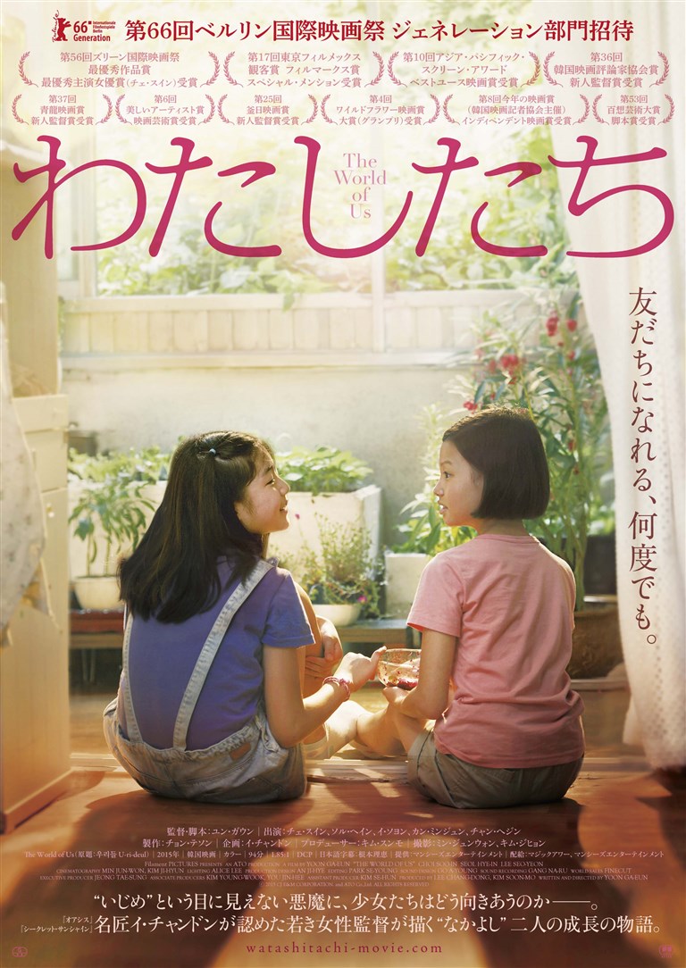 様々な問題を抱えながら成長していく少女たちの姿を映し出す、自身の経験を基にしたユン・ガウン監督の長編デビュー作。学校で仲間外れにされがちな10歳の少女ソン。ある日、同い年の転校生ジアと親しくなり友情を築いていくが、次第に二人の関係に変化が訪れる。企画者として「オアシス」「ポエトリー アグネスの詩」のイ・チャンドンが参加。一般公開に先駆け、2016年11月、「第17回東京フィルメックス」にて「私たち」のタイトルで上映。