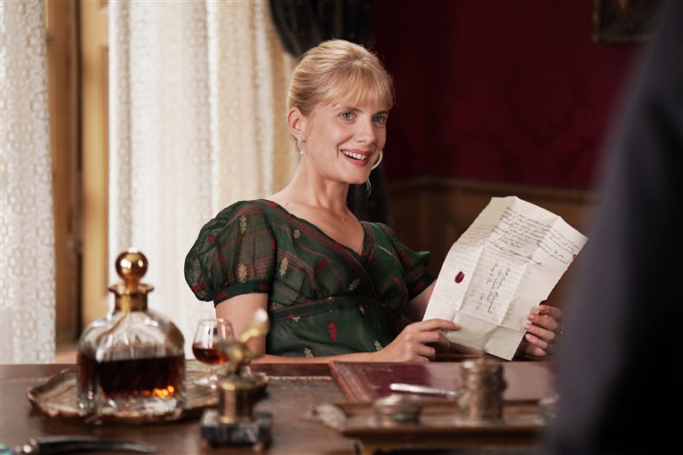 1809年、フランス・ブルゴーニュ。裕福なボーグラン家の次女・ポリーヌ(ノエミ・メルラン)は、戦地から帰らない婚約者を日々待ち続けていた。気の毒に思った姉のエリザベット(メラニー・ロラン)は差出人をポリーヌの婚約者と偽り、自分で書いた手紙を妹に届けるのだった。その婚約者・ヌヴィル大尉を第一線で大活躍の末に戦死したことにしてから3年が経過したある日。エリザベットは街で偶然ヌヴィル(ジャン・デュジャルダン)に遭遇。街の人々は伝説の英雄の帰還に沸き、恋人の再登場にポリーヌは胸ときめく。心中穏やかでないエリザベットの心配をよそに、ヌヴィルはこの偉大なる“嘘”を利用して一儲けしようと目論むが……。