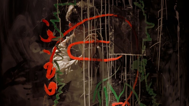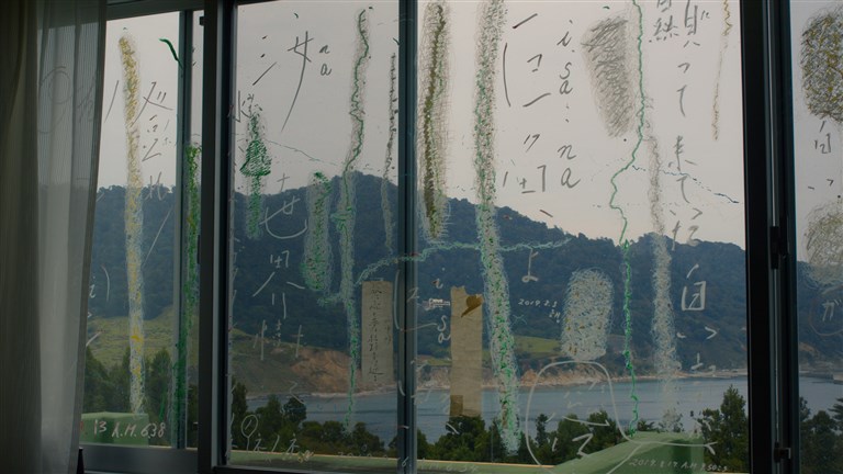 80歳を超えてなお旺盛な創作活動を続ける日本を代表する現代詩人・吉増剛造。本作は彼が、ECD、灰野敬二、劇団・地点、飴屋法水とのコラボレーションでも知られる先鋭的なオルタナティブロックバンド・空間現代と、京都の小さなライブハウス「外」で2019年に行った、ある朗読ライブ《背》の記録だ。吉増剛造はその年の夏、かつて津波を引き起こした海に面する宿の小部屋で、窓の向こうの海に浮かぶ霊島・金華山を眺めながら、その地に足を踏み入れることなく、詩を書いた。それは今、世界が閉ざされる経験をした後の我々には予見的で、象徴的にも感じられる。その詩に歌人・斎藤茂吉の短歌からの引用を加え、マスクや目隠しを用いながら、声の限りに叫び、また朗読し、録音を再生し、ありったけの力で透明なガラスにドローイングする……。鬼気迫るライブ・パフォーマンスの全編を凝視し、詩人の言葉の“背”後を浮き彫りにする。