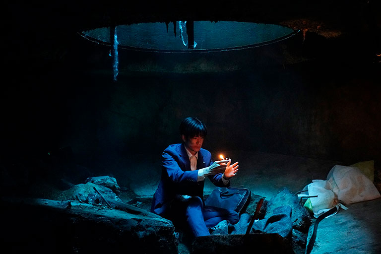 営業成績No.1のデキる男・川村俊介(中島裕翔)は、社長令嬢との結婚式前夜、渋谷で開かれたサプライズパーティで酩酊し、帰り道で不覚にもマンホールに転落する。深夜、穴の底で目覚めた川村は、足に深手を負い、思うように身動きが取れない。スマホで現在位置を調べてみるが、GPSは誤作動し、助けを求めた警察もまともに取り合ってくれない。唯一、連絡が取れた元カノに助けを求めることができたが、そこである疑念が発覚する。“もしかして、ここは渋谷ではない?”何者かにはめられたと考えた川村は、SNS上で“マンホール女”のアカウントを立ち上げ、場所の特定と救出を求める。犯人探しに沸き上がるネット民たちを操る川村。結婚式までのタイムリミットはあとわずか。川村はこのどん底から這い上がれるのか……!?