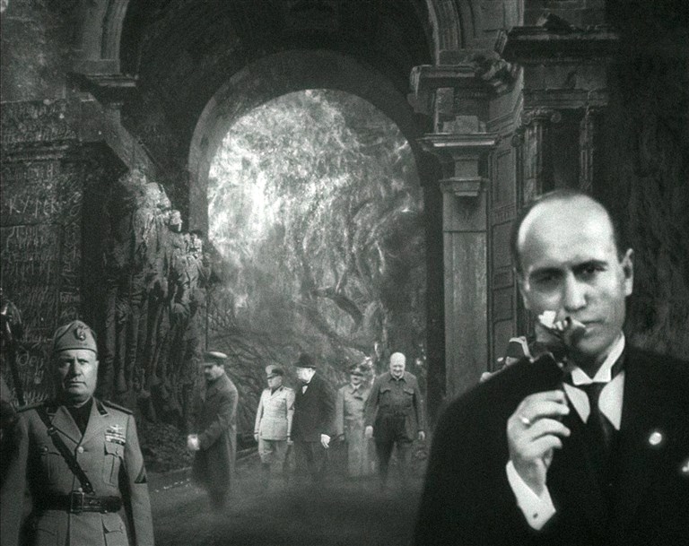 深い霞に覆われた色のない廃墟の中で男たちが蠢いている。アドルフ・ヒトラー、ヨシフ・スターリン、ウィンストン・チャーチル、ベニート・ムッソリーニ……。第二次世界大戦時に世界を牛耳っていた独裁者たち。やがて煉獄の晩餐が始まると、お互いの悪行を嘲笑、揶揄し、己の陶酔に浸る。“地獄”のようなこの場所で“天国”へと続く扉が開くのを待っているのだろうか………。