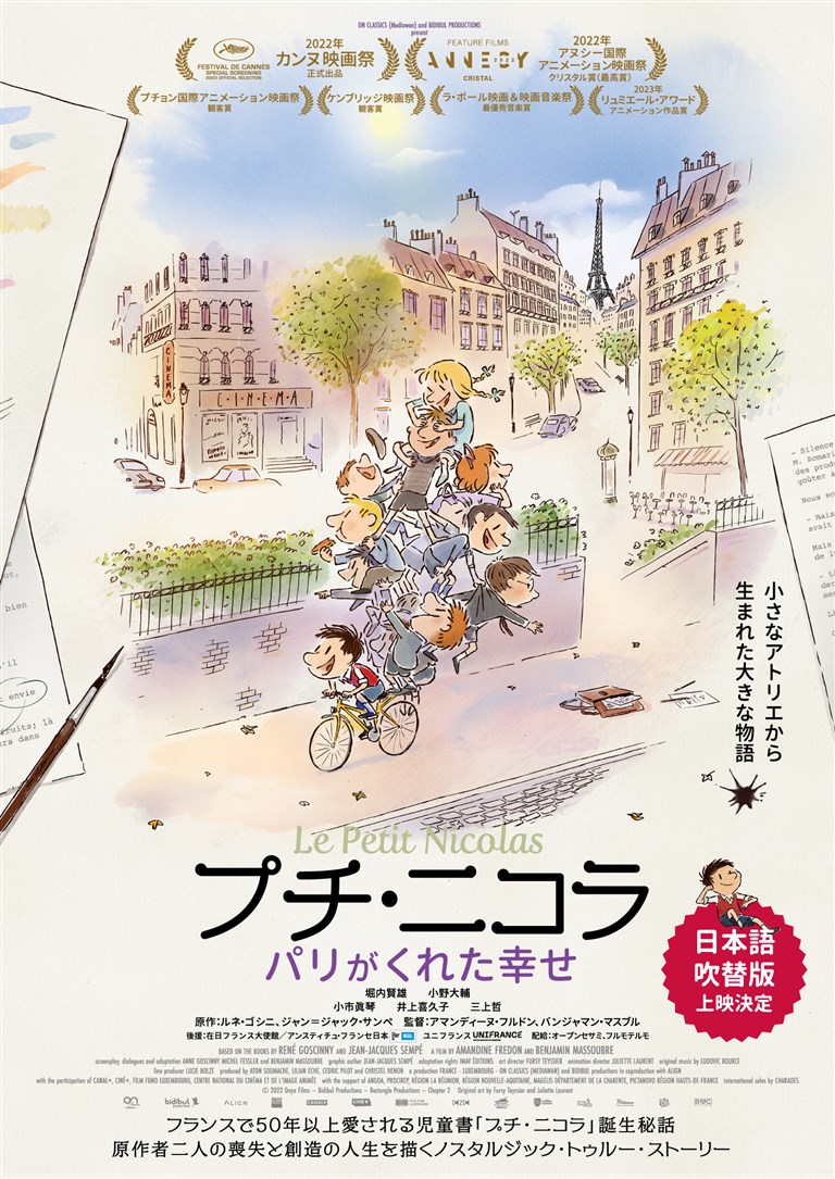 フランスで50年以上愛され続け、世界30カ国で翻訳されている児童書『プチ・ニコラ』の誕生秘話を描いたアニメーション。親友同士の原作者、イラストレーターのジャン=ジャック・サンペと作家のルネ・ゴシニの人生に『プチ・ニコラ』の物語を交えて描く。第75回カンヌ映画祭正式出品(スペシャル部門)。2022年アヌシー国際アニメーション映画祭クリスタル賞(最高賞)受賞。監督はTVアニメシリーズのディレクターとして活躍してきたアマンディーヌ・フルドンと、アヌシー最高賞&観客賞を受賞した「失くした体」などの編集を担当し、本作で監督デビューを飾るバンジャマン・マスブル。原作のジャン=ジャック・サンペがグラフィック・クリエーターとして参加した。