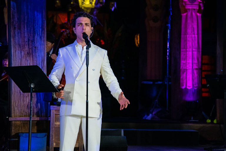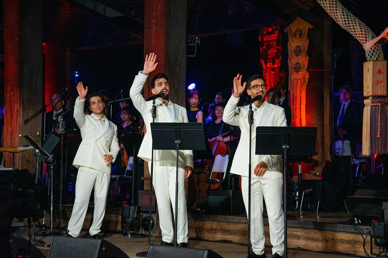 2009年、イタリアの人気オーディンション番組をきっかけにジャンルカ・ジノーブレ、イニャツィオ・ボスケット、ピエロ・バローネの3人が結成したヴォーカル・ユニット“イル・ヴォーロ”。その甘美な歌声と豊潤な表現力が生み出す美しいハーモニーで世界中を魅了してきた彼らは、2016年にイタリア・フィレンツェのサンタクローチェ広場、2019年には南イタリアのマテーラと、世界遺産を巡るライブを行ってきた。人類共通の財産である神秘的な世界遺産と圧巻の歌唱力が融合し、多くの観客を魅了し大好評を博したライブシリーズはいずれも劇場公開され、日本でも大ヒットを記録。これを受けてアジア・日本の世界遺産でのライブを目的としたプロジェクトが結成され、さまざまな検討・調整を経て、国宝でもある京都・清水寺がアジア初の会場として選ばれた。清水寺の本堂舞台で海外アーティストがライブを行うのは、約1250年に渡る清水寺の歴史上初めてのこと。清水寺の歴史に新たな1ページを刻むライブは2022年夏、コロナ禍で人々が非日常の生活を強いられ、疲弊する中、無観客で行われた。そこには3人の平和への願いが込められ、グループ名が意味する“飛翔”という言葉にふさわしく、京都の空から世界に向け、重層的かつ躍動感あふれる圧巻のパフォーマンスが繰り広げられた。そして、“イル・ヴォーロ”結成15年を迎える2024年、この一夜限りの貴重な奉納ライブの公開が決定。その幻想的で奇跡的な一夜がスクリーンに蘇る。