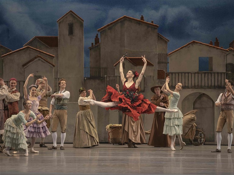 読みふけっていた本に登場する美しい姫ドルシネアを夢に見た老紳士ドン・キホーテ(ギャリー・エイヴィス)は、彼女に恋をする。ドン・キホーテはドルシネア姫と出会うことを夢見て、従者サンチョ・パンサ(リアム・ボズウェル)を引き連れ、騎士気取りで冒険の旅に出る。バルセロナの街で、町娘キトリ(マヤラ・マグリ)は床屋のバジル(マシュー・ボール)と恋仲だが、娘を金持ちの貴族ガマーシュ(ジェームズ・ヘイ)に嫁がせようと目論む父ロレンツォ(トーマス・ホワイトヘッド)は二人の仲に反対している。街にドン・キホーテとサンチョ・パンサがやってきて、キトリをドルネシア姫だと思い込んでしまう。恋人たちはジプシーの野営地に逃げ込み、ドン・キホーテの夢の中では、ドルネシア姫、キューピッド、森の女王や妖精たちが踊り、美しい時間が流れる。キトリとバジルは街の居酒屋で友人たちと祝杯をあげようとするが、ロレンツォやガマーシュもそこで待ち構えていた。バジルは結婚を許さないなら死ぬと狂言自殺をし、ドン・キホーテもロレンツォを説得する。ロレンツォは二人の結婚を認め、結婚式が華やかに行われる。恋人たちの仲を取り持ったドン・キホーテはサンチョ・パンサを引き連れ、再びドルネシア姫を探して新たな冒険へと旅立っていく。