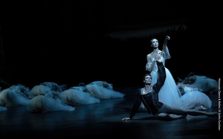 農民の娘ジゼル(オリガ・スミルノワ)は、アルブレヒト(ジャコポ・ティッシ)と恋に落ちる。しかし彼は、自身が貴族であることや、婚約者がいることを隠していた。真実を知り悲しみに暮れたジゼルは、絶望のなか取り乱し、息絶える。ジゼルが眠る墓は、結婚前に死んだ花嫁の精霊ウィリの集まる森にあり、ジゼルはウィリの仲間に入る。ウィリたちは、迷い込んできた人間や裏切った男を死ぬまで踊り狂わせる。ある夜、アルブレヒトがジゼルの死を悔いて墓を訪れるが……。