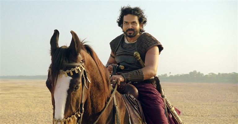 10世紀、南インドで繁栄を極めるチョーラ王朝。しかし、首都タンジャイでは、スンダラ王(プラカシュ・ラージ)が長く病に伏し、パルヴェート侯(R・サラトクマール)を中心とした臣下たちは、次期国王の座に王子ではなく従弟の擁立を画策していた。2人の王子、長男アーディタ(ヴィクラム)と次男アルンモリ(ジェヤム・ラヴィ)が領土拡張のため、それぞれ北方と南方で戦いを繰り広げる中、父と共に都に残って実権を握るのは、聡明な王女クンダヴァイ(トリシャー・クリシュナン)。遠く離れた3人だが、不穏な動きを察知し、共にこれに対抗すべく、密使を送り出す。一方、パルヴェート侯の美貌の妻ナンディニ(アイシュワリヤー・ラーイ)は、夫を陰で操り、チョーラ王朝を揺さぶろうとする。そこには、アーディタとの過去の悲恋と確執が深い影を落としていた。愛憎と陰謀が渦巻くチョーラ王朝を舞台に、密使に選ばれた若く陽気な騎士デーヴァン(カールティ)の壮大な旅が幕を開ける……。